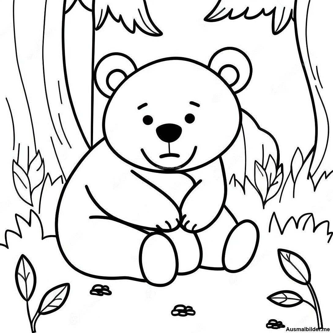 Druckbare PDF von Schlafender Bär Im Wald Ausmalbild herunterladen