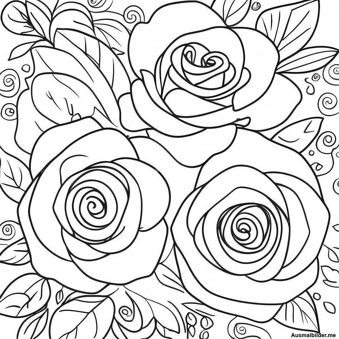 Druckbare PDF von Schöner Rosenstrauß Ausmalbild herunterladen