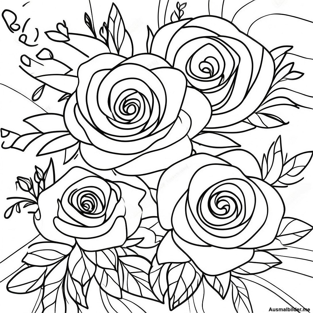Druckbare PDF von Schöner Rosenstrauß Ausmalbild herunterladen