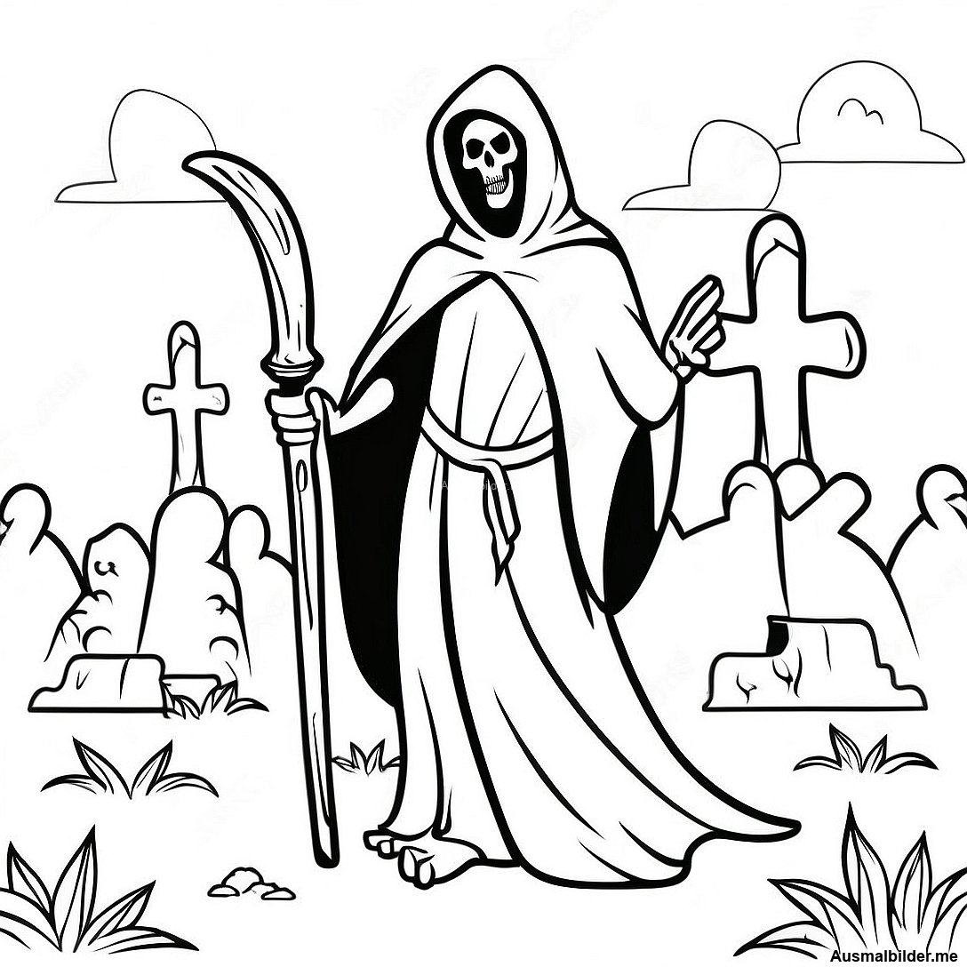 Sensenmann Auf Einem Friedhof Ausmalbild 81855 23485