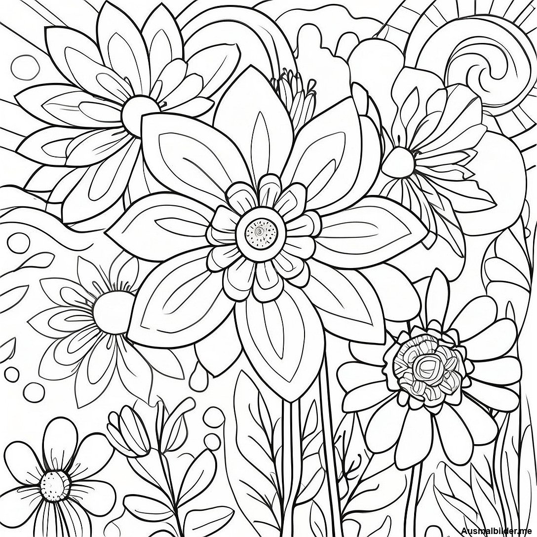Bunte Frühlingsblumen Ausmalbild