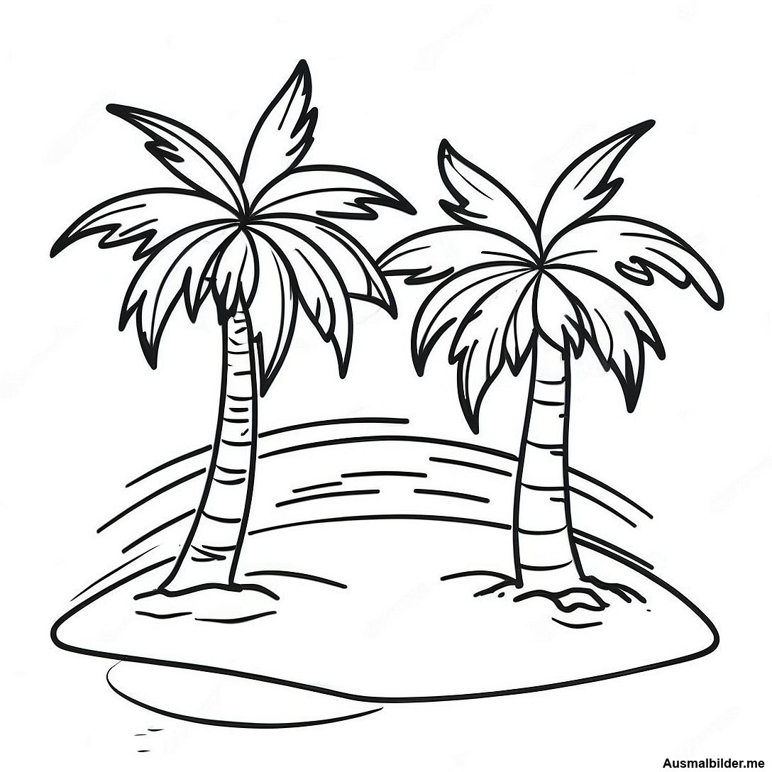 Druckbare PDF von Sonniger Strand Palmenbaum Ausmalbild herunterladen