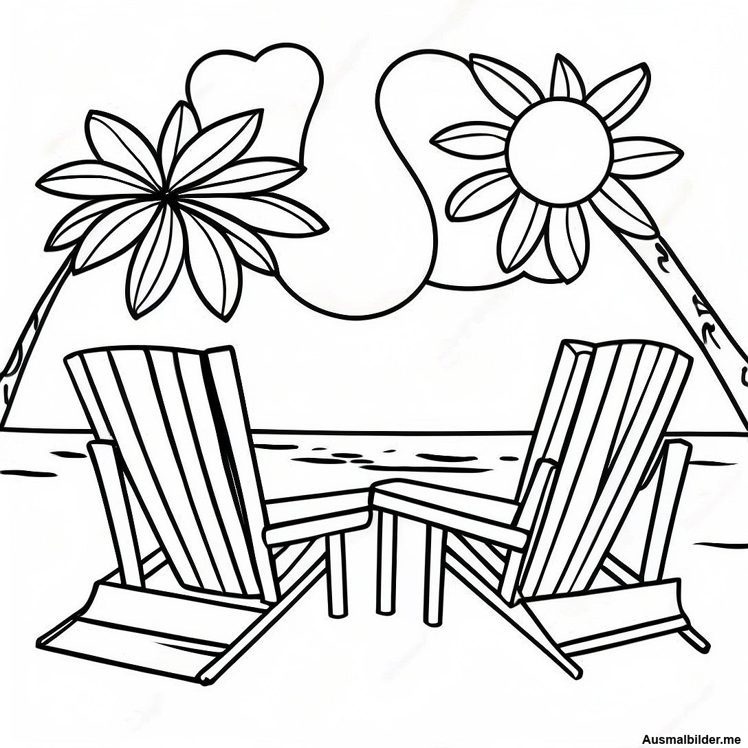 Druckbare PDF von Sonniger Strandurlaub Ausmalbild herunterladen