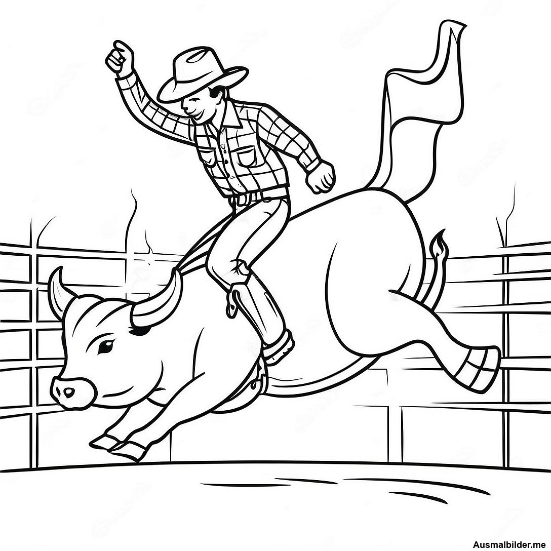 Spannender Bullenreiten Wettbewerb Ausmalbild