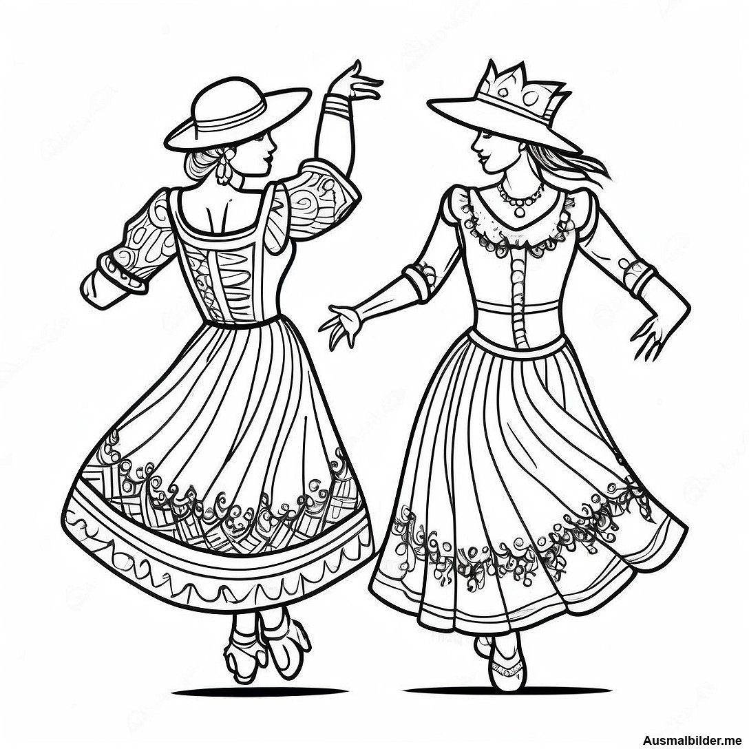 Druckbare PDF von Traditionelle Argentinische Tänzer Ausmalbild herunterladen