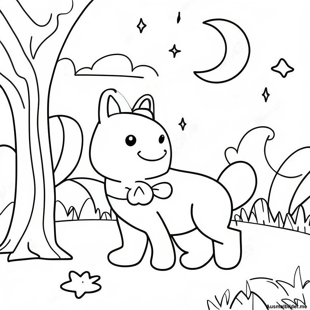 Verspielt Mondschein Nacht Ausmalbild
