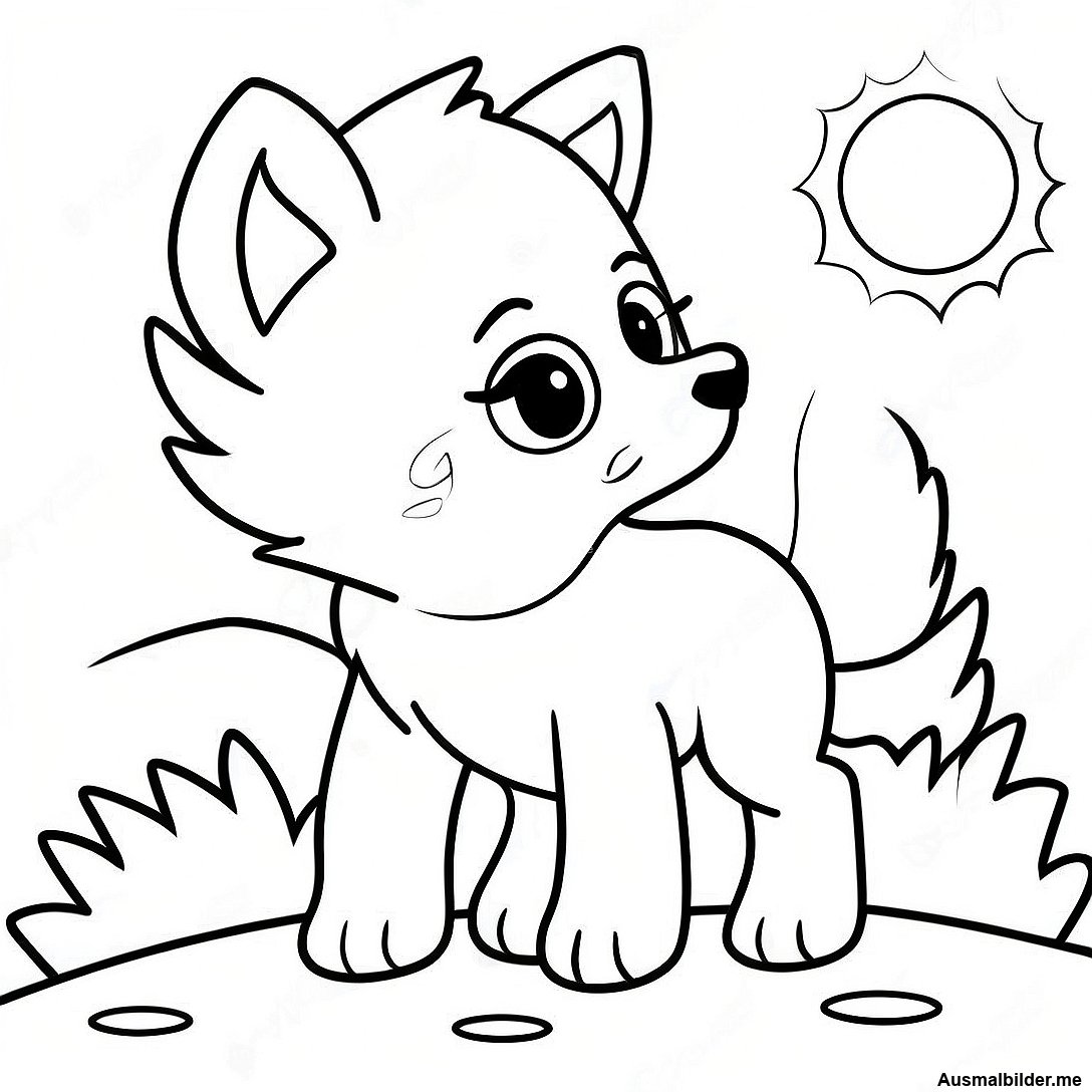 Druckbare PDF von Verspielter Wolfwelpe Im Mondlicht Ausmalbild herunterladen