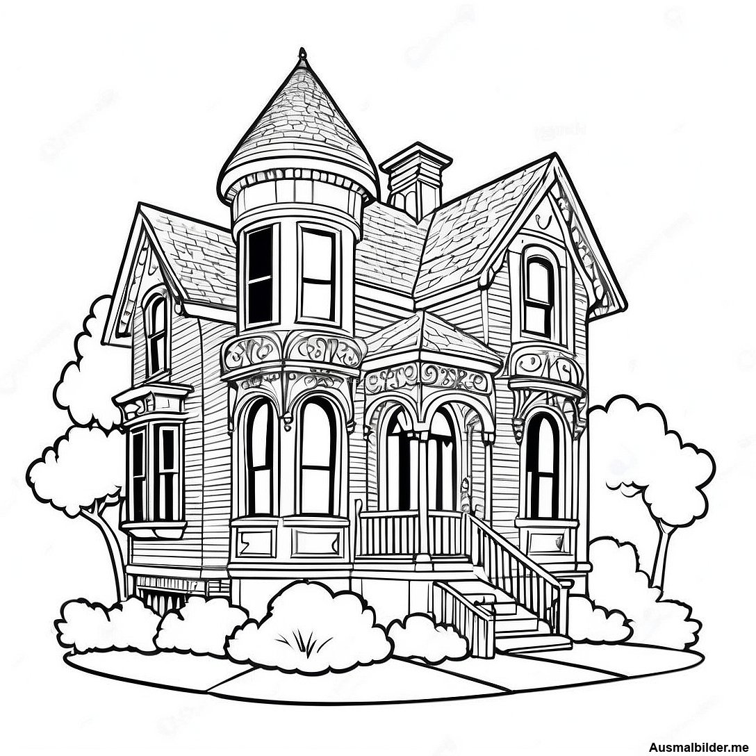 Druckbare PDF von Viktorianisches Haus Ausmalbild herunterladen