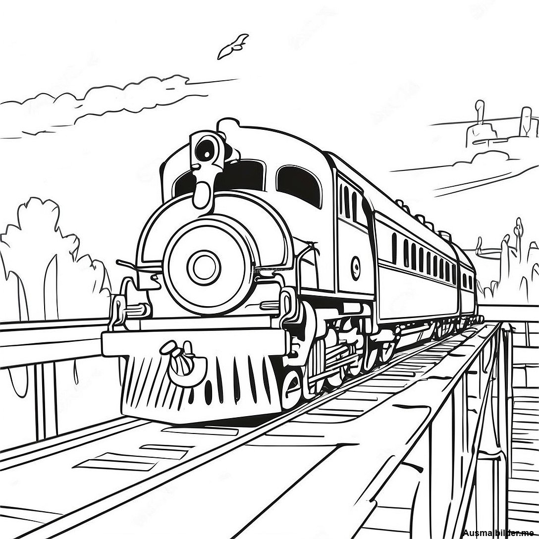 Vintage Zug Auf Einer Brucke Ausmalbild